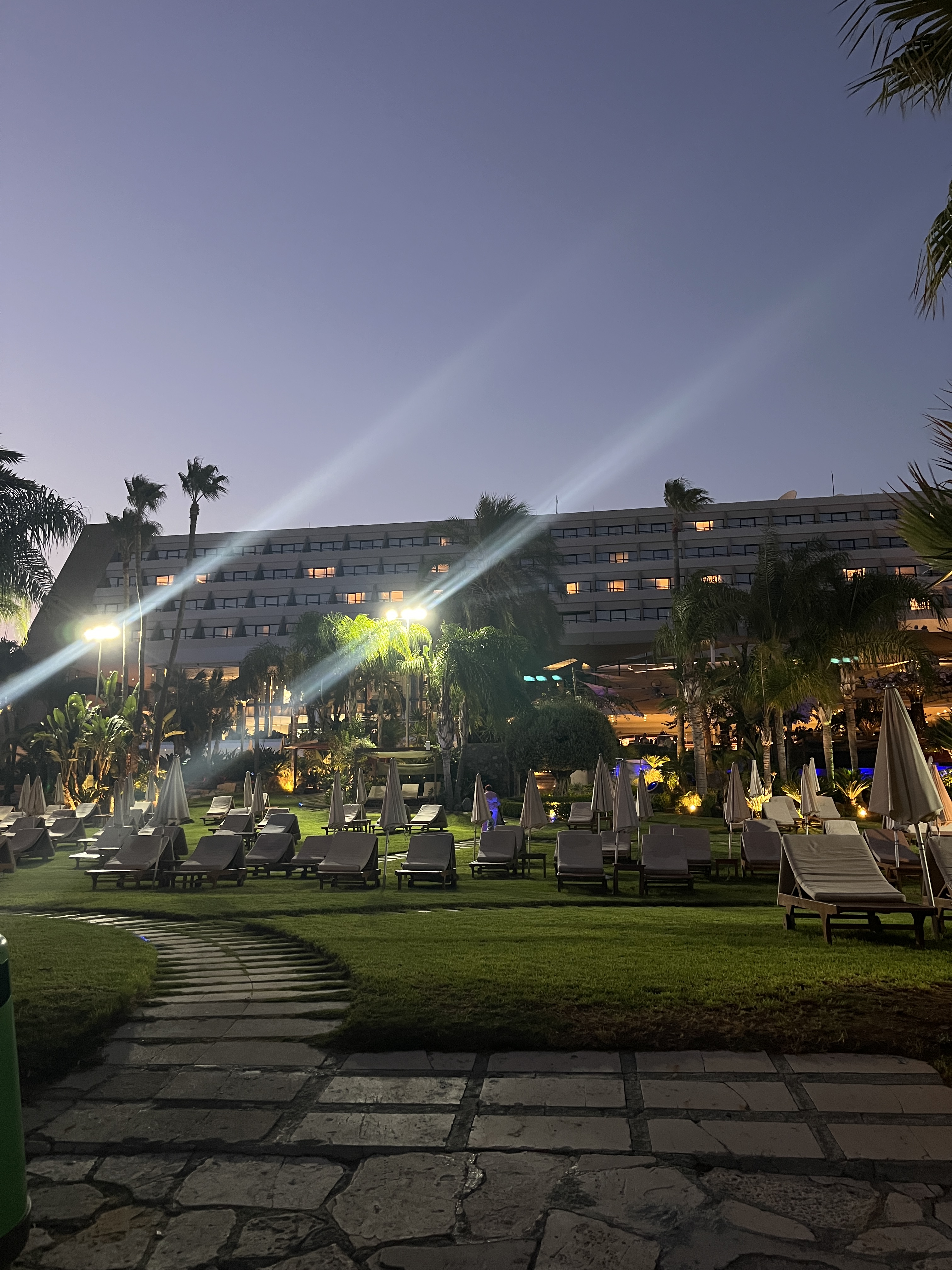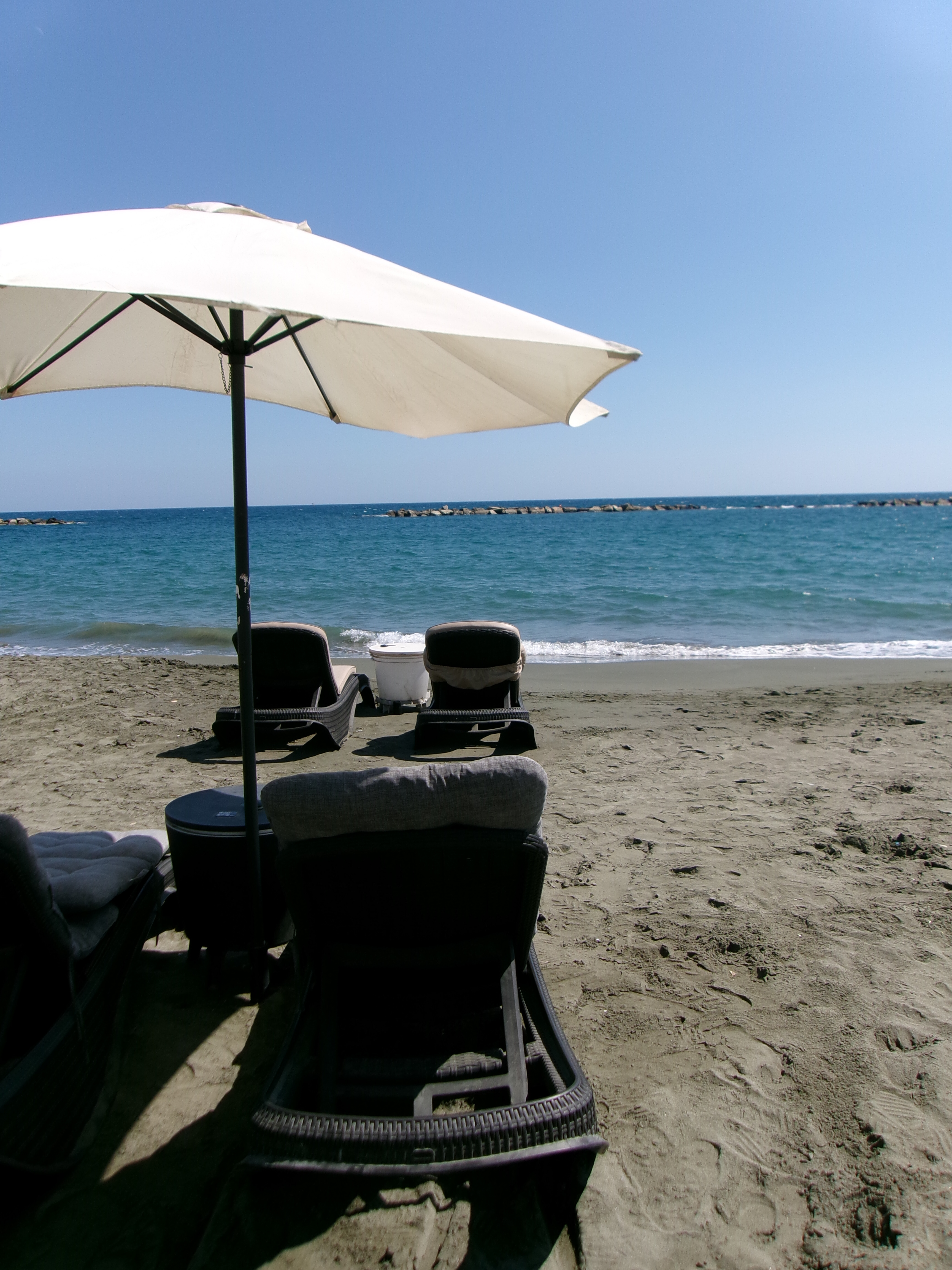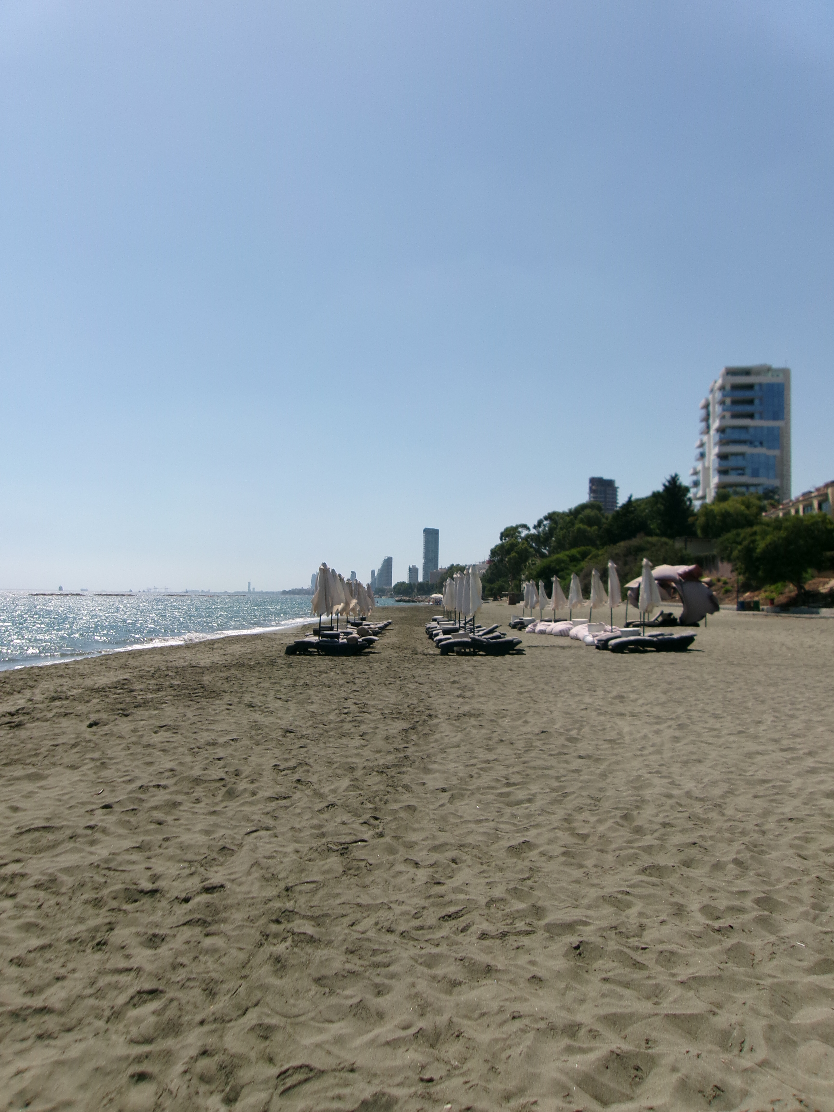 Una volta arrivati comunque il panorama era molto d’effetto con questi giganteschi alberghi incastonati fra boschetti artificiali (nel senso creati dall’uomo), vicinissimi alla spiaggia. Da un lato l’area riservata a chi alloggia in questi stabili, ma appena accanto la spiaggia pubblica in cui abbiamo pagato due lettini e un ombrellone praticamente in acqua solo 12,50 €, che tra l’altro è comunque più alto rispetto alla media che si spende qui a Cipro, ma visto ciò a cui siamo abituati noi, qualche euro in più lo abbiamo comunque speso con gioia.