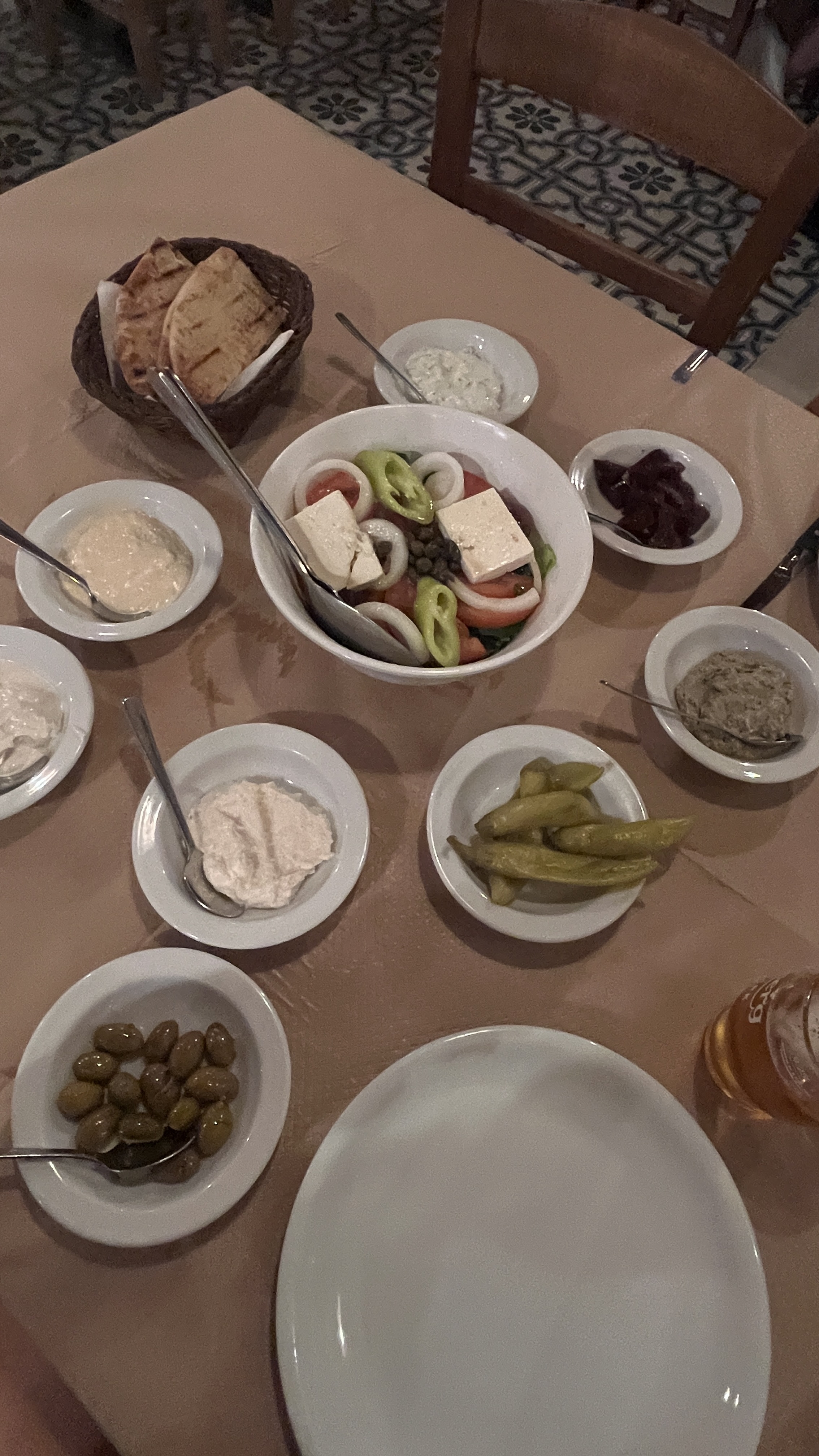 Ci rechiamo da Meze, un famosissimo ristorantino, o come le chiamano qui taverna, di cucina tipica greco/cipriota. Le meze le troviamo anche in turchia, e corrispondono ad una serie di assaggi di più o meno tutto.
