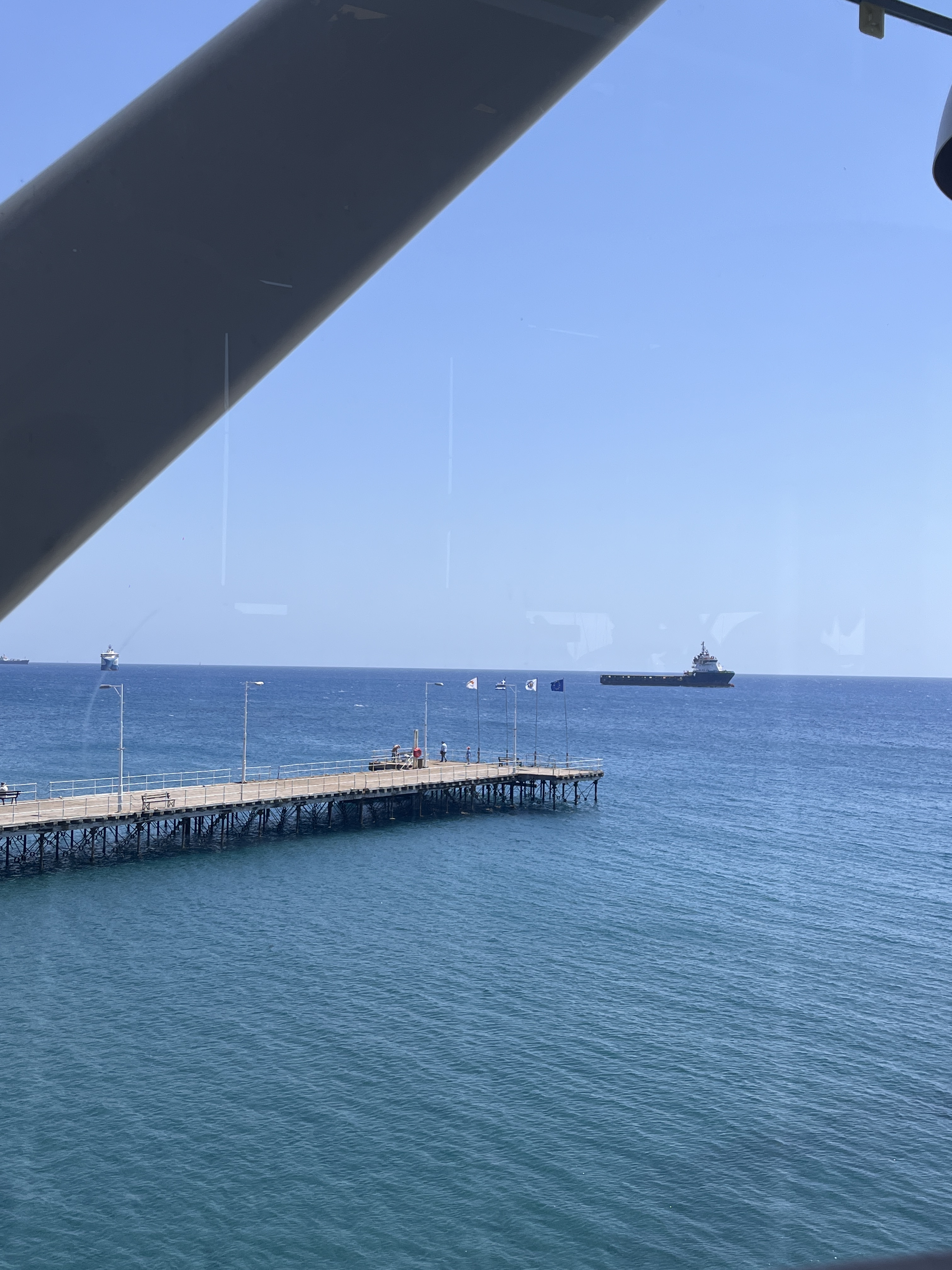 Ci siamo recati quindi al Pier One un palazzone che si trova praticamente sospeso sopra l’acqua e guarda da un lato la zona del porto nuovo, dove attraccano delle immense navi probabilmente petroliere o di trasporto merci, e dall’altro invece tutto la baia del Golfo di Limassol, compreso lo skyline che delle volte sembra quasi Copacabana tra altissimi palazzi e una marea di palme.
