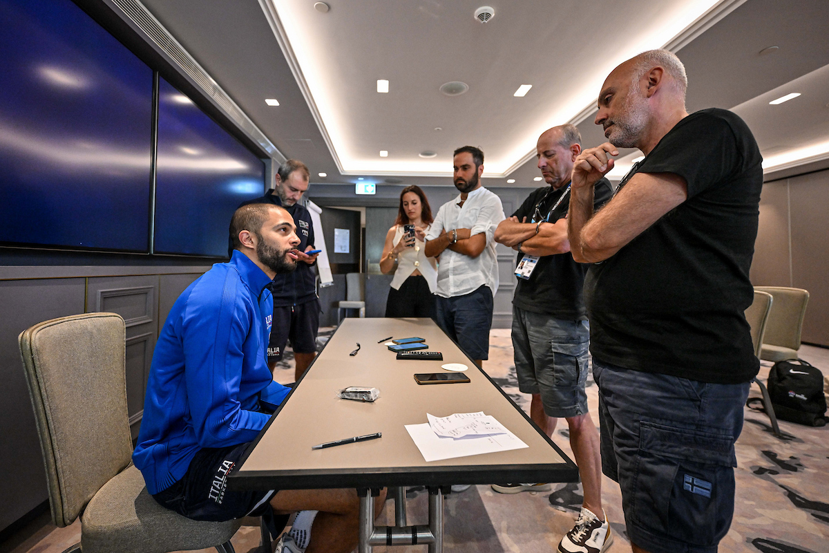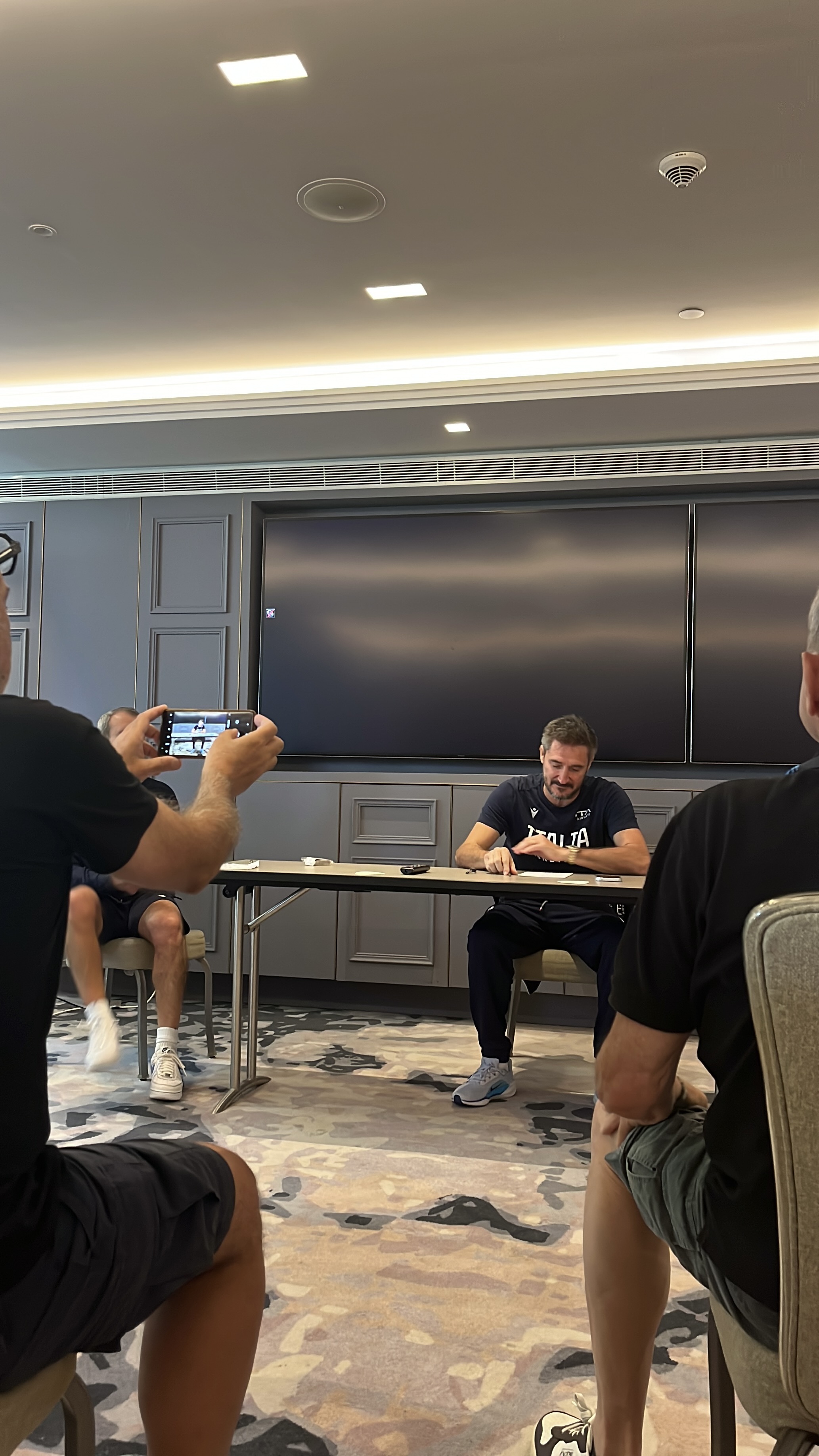 Per una quarantina di minuti siamo poi chiusi nella meeting room della nostra nazionale, a chiaccherare con Pozzecco e Thompson e pochi altri giornalisti del nostro campionato fino ad ora, i buoni risultati e qualche dubbio che ancora restava su giocatori e tattiche. Avere la possibilità di poter conversare in maniera così intima e amichevole è apprezzabile, ne esce una chiaccherata tranquilla che, nonostante sia quello l’obiettivo, toglie un po’ la patina di distanza formale dei contesti prettamente giornalistici (anche se dobbiamo ammettere che il nostro capo allenatore non è solito fare tanti giri di parole nemmeno negli eventi ufficiali).