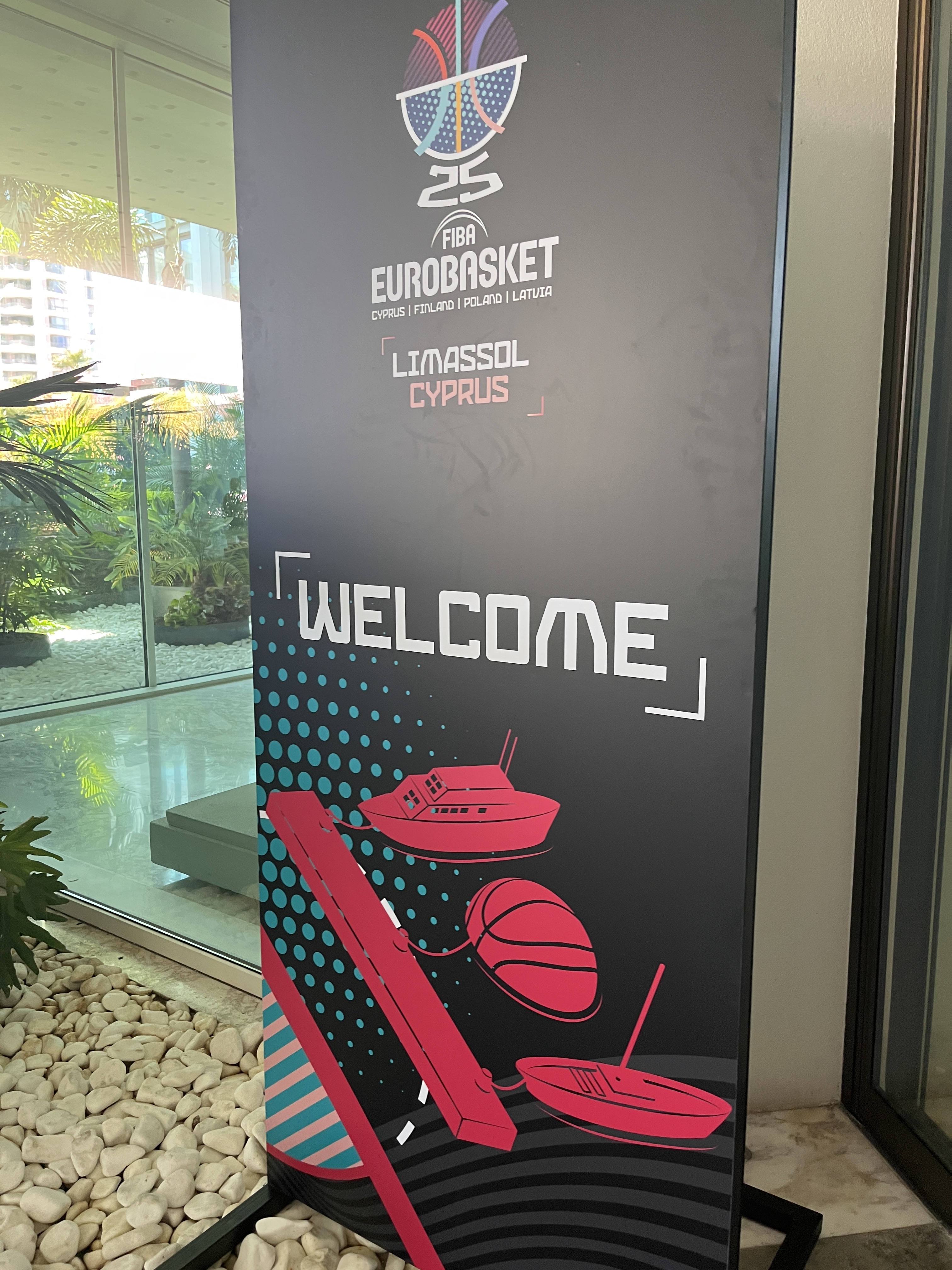 Appena entrati nella grande hall l’aria da eurobasket si percepisce ancora di più; mentre attendiamo l’arrivo del nostro capo allenatore siamo partecipi di un via e vai di giocatori e staff di tutte le nazionali, chi con le proprie famiglie, chi con tablet e appunti, chi si reca in spiaggia e per chi come noi osserva da fuori è una visione quasi celestiale.