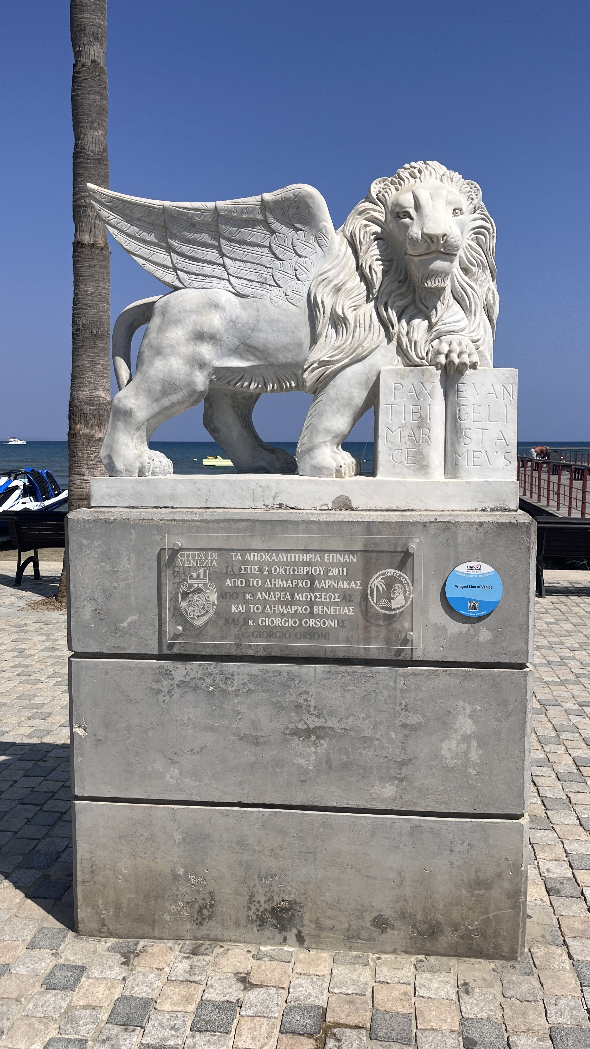 Pranziamo da To Kafe Tis Chrysanthi’s, poi unn veloce giro sul lungomare e le stradine della città vecchia visto che il volo era già stato ritardato di un’ora, decidendo di non visitare il bastione che si impone sul mare viste le precedenti esperienze (questo dovrebbe però essere più importante, costruito dai bizantini ma molto sviluppato dai veneziani). Al di fuori troviamo l’unica vera traccia dei Serenissimi di tutta la vacanza, un leone alato regalato dalla città di Venezia.
