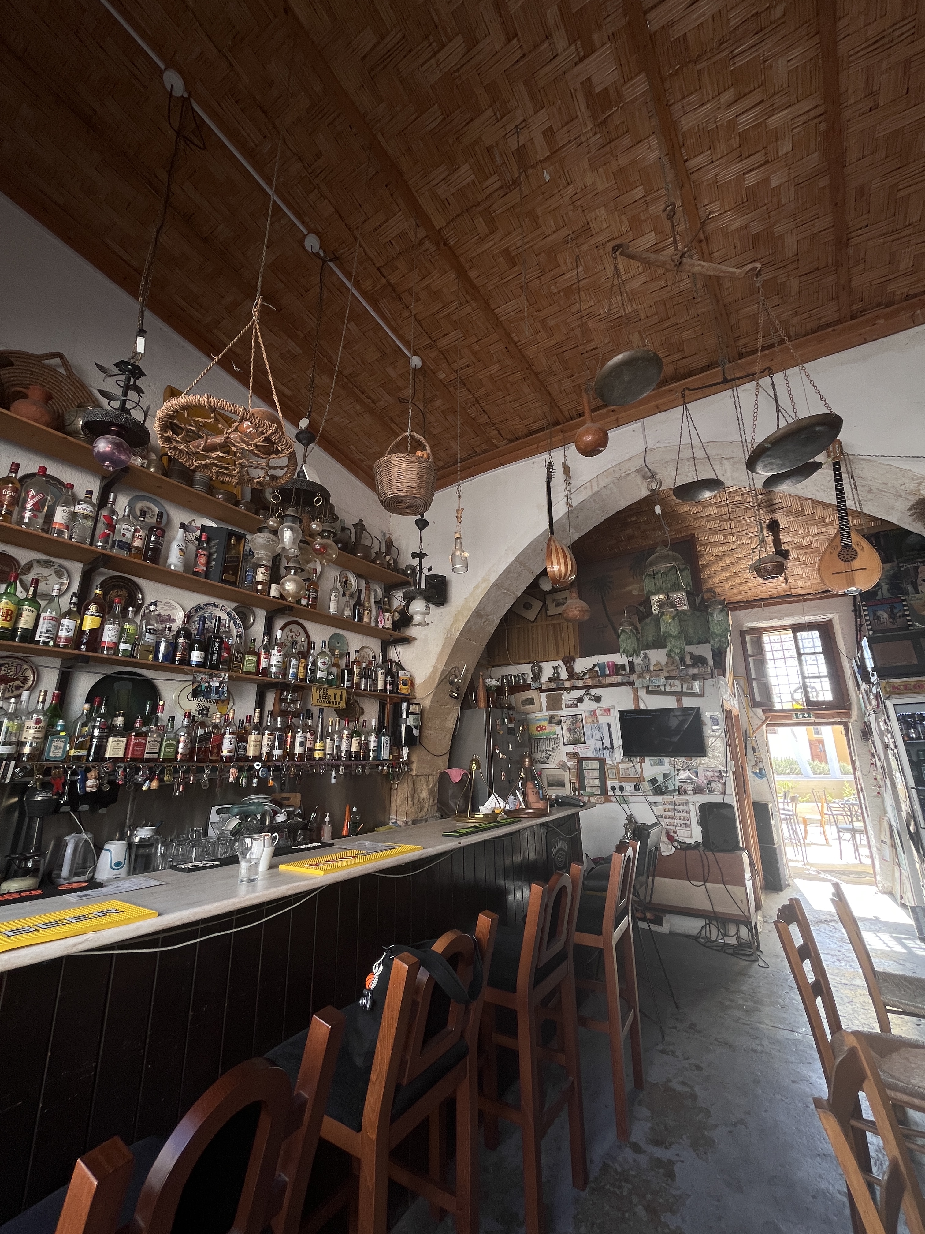 Qui con una birra per ingannare il tempo mentre guardiamo la gara trasmessa finisce il nostro viaggio a Cipro, contenti ma un po’ sfiniti.